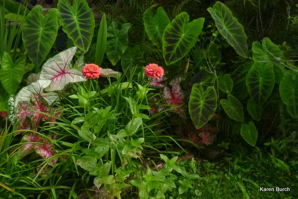 After all the rain we got from the storm it looks like the elephant ears are going crazy growing in nice and thick making quite a statement. I am surprised to see a few early blooming daylilies Red Stripe seedlings still hanging around. The Burpee Cut and Come Again zinnias are going to be a favorite of mine because I want to save seeds from these to grow next year.