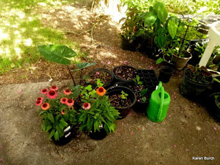 This is the first post on my new blog. I’m just getting my garden ready for Hurricane Barry. I didn’t do anything that looked fancy but more like frantic from the looks of this picture. I managed to use wooden stakes and ropes to support some of my sunflowers. The one sunflower I did not support is already toast and this is just the day before! I turned a lot of pots over on their sides to avoid excessive damage to my plants and put some of the more delicate plants like the Japanese Morning Glories in the shed. I placed covers over some of my seedlings so they wouldn’t get damaged or washed out by the rain.